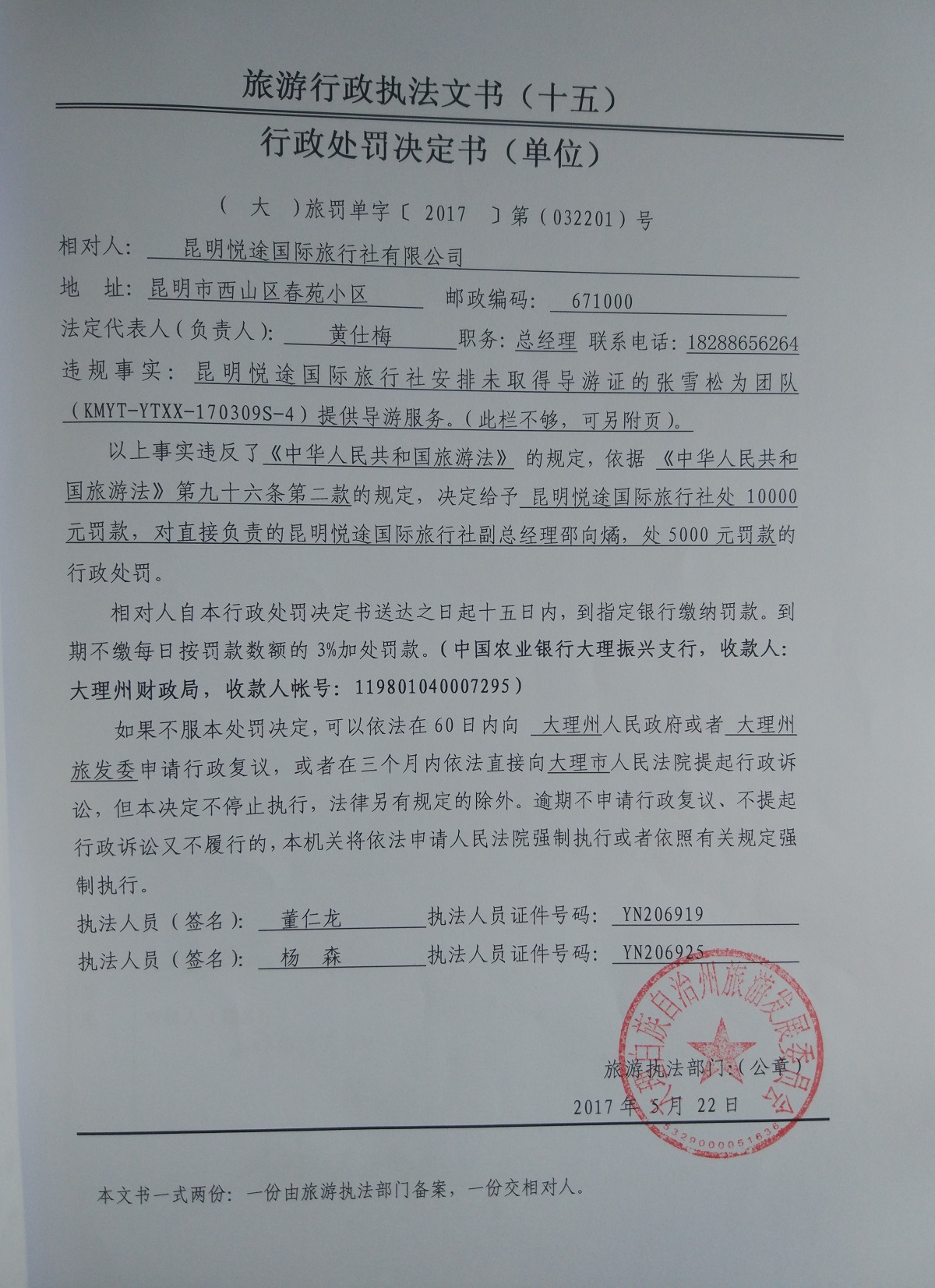 行政处罚决定书(2017032201)